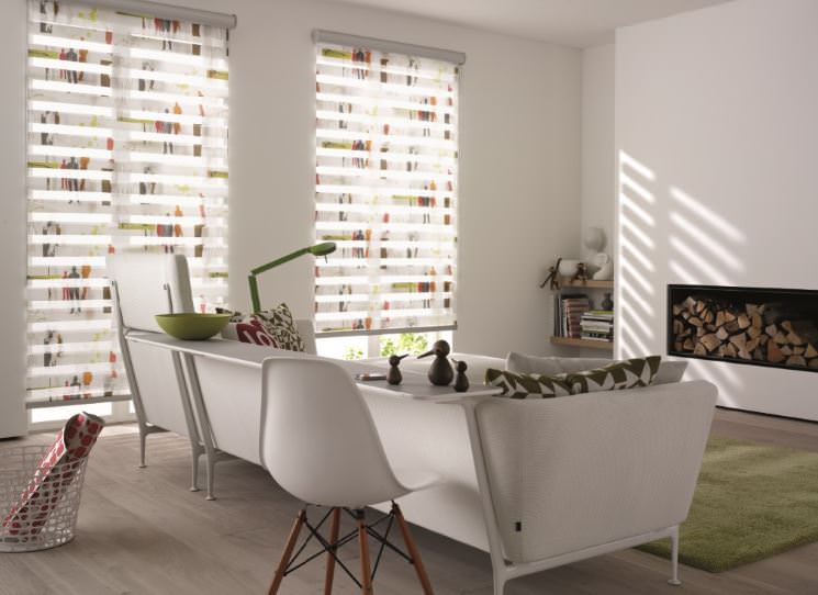 Schlicht, einfach, funktional, preiswert, oder als Doppelrollo „Duo“ ; die neue, trendige Variante mit Doppelfunktion. 2 Stoffe hintereinander ermöglichen Durchsicht oder schützen vor Einblick, Verstellung durch Kettenzug.